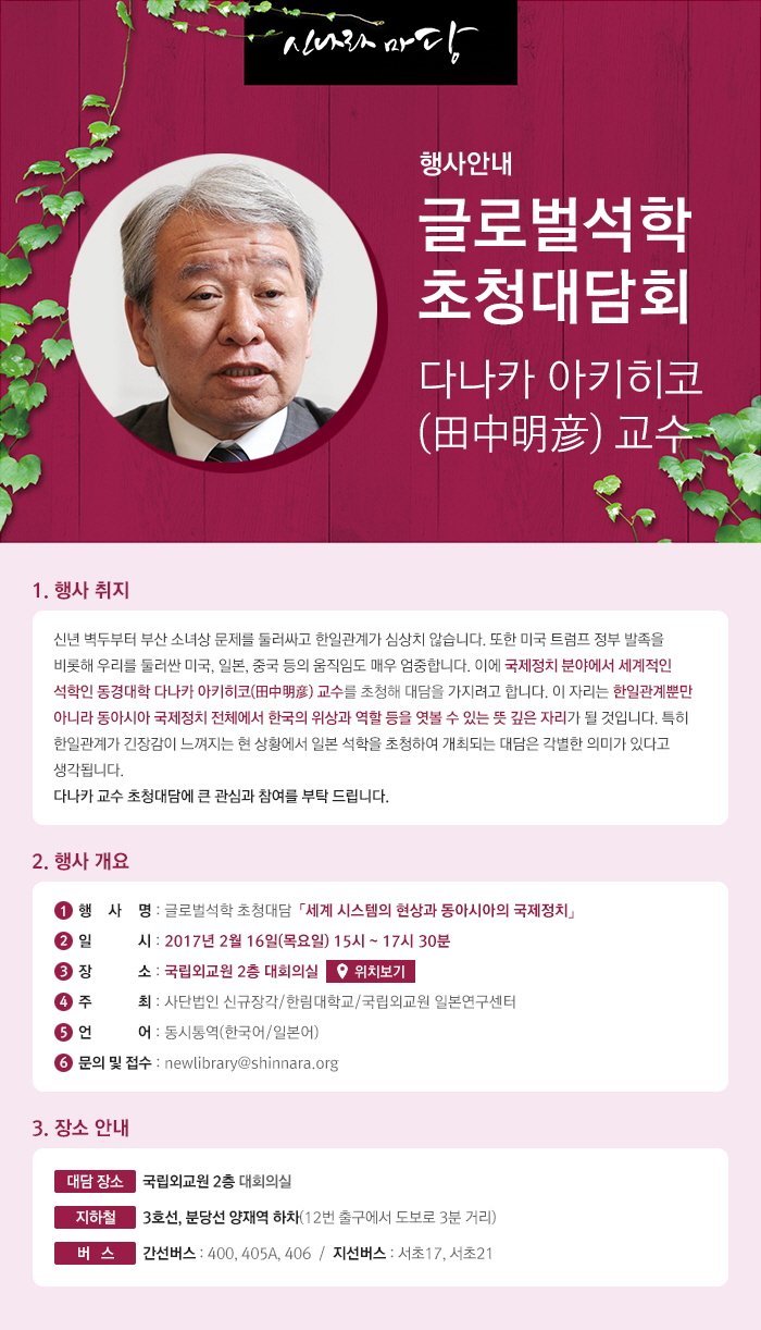 5. 다나카 아키히코(田中明彦) 교수 약력6. 문의 및 접수 : newlibrary@shinnara.org
